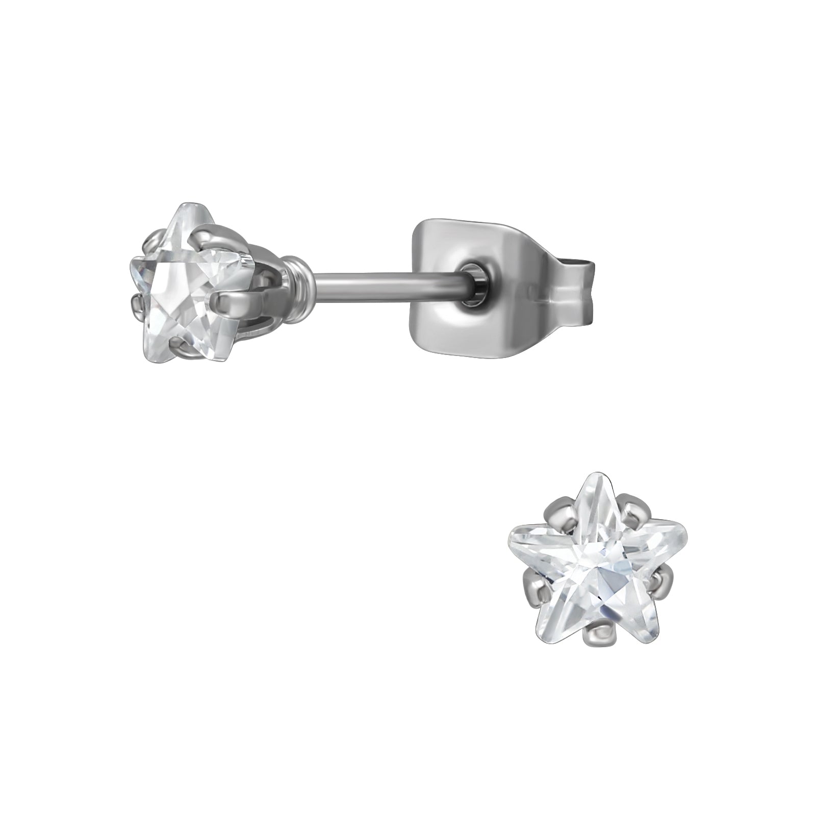 6mm Star Surgical Steel Ear Studs with Cubic Zirconia